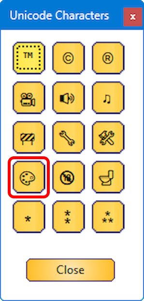 From the Unicode dialog, choose the coloured DMD icon. This symbol will be used as the marker for tables with coloured ROMs. |
